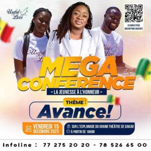 Vendredi 15 décembre 2023 sur l’Esplanade du Grand Théâtre à partir de 16h00. Une conférence en développement personnel grand format organisée par la plateforme Usefullives de Anna E. Diouf Sarr coach international spécialisée en développement personnel, conduite du changement et leadership transformationnel.